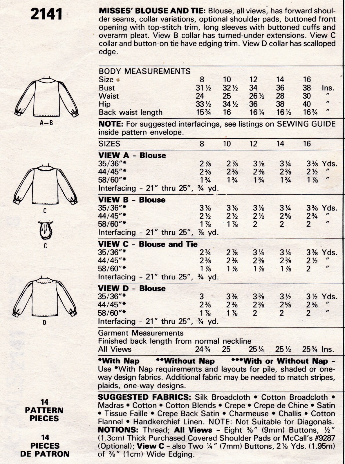 Mccall S 2141 Vintage Sewing Pattern Misses Blouse Etsy