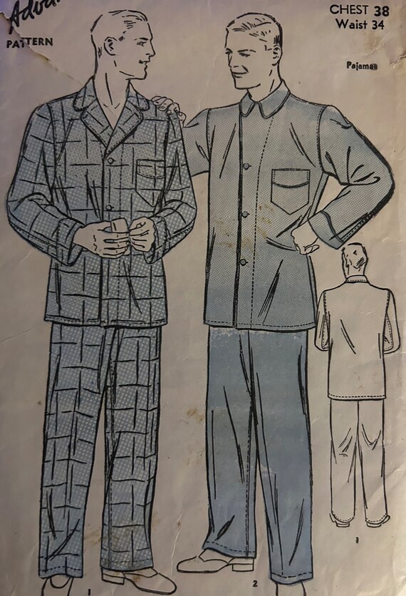 1930s Vintage Advance Sewing Pattern 2141 Men S Wwii Pajamas Size 38 C Vintage4me2